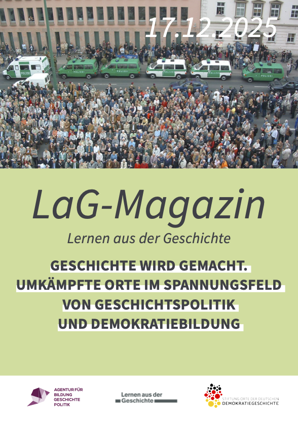 Diese Ausgabe wurde von der Stiftung Orte der deutschen Demokratiegeschichte gefördert – dafür danken wir herzlich. Unser Dank gilt ebenso allen Autor*innen dieser Ausgabe. Die nächste Ausgabe des LaG-Magazins erscheint am 25. Februar 2025 und widmet sich dem historischen Lernen von Grundschulkindern über die DDR.