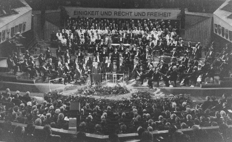 Staatsakt zum Tag der Deutschen Einheit in der Philharmonie, 3.10.1990, Berlin, © Peter Grimm, Bundesarchiv, Bild 183-1990-1003-028/CC-BY-SA 3.0, Bundesarchiv Bild 183-1990-1003-028, Berlin, Staatsakt zum Tag der deutschen Einheit